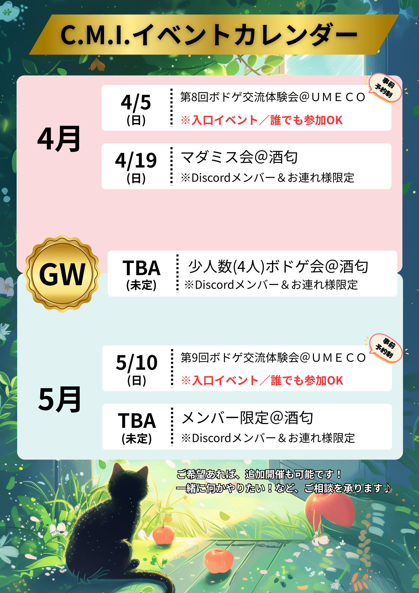 ボードゲーム会から始まっている活動ではありますが、CMIの活動を通じて皆様の好奇心の種を見つけられるイベント・場所に敷いて行ければな~と思ってます。