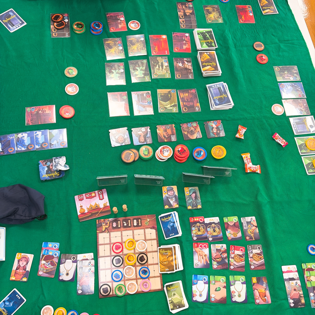 カタンや人狼の次ぐらいに認知度の高いゲームがSplender(宝石の煌き)ではないでしょうか。小一時間ぐらいで遊べて、思考力も使う良作だと思っていて、私も大好きなゲームです。